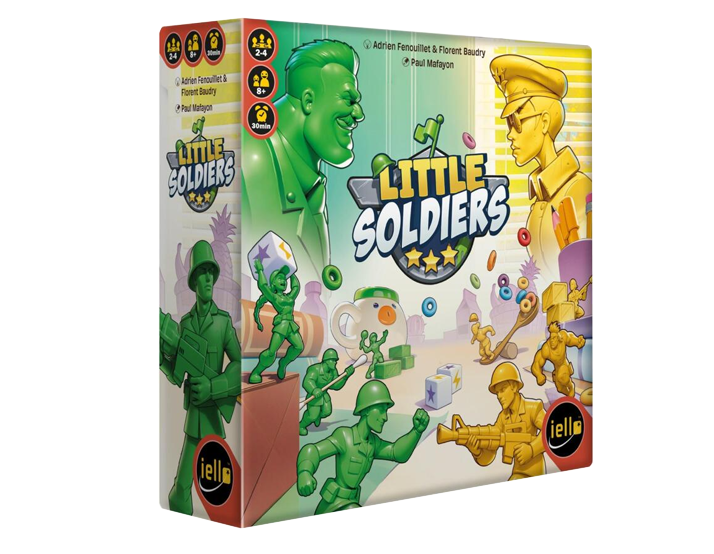 InĀ Little Soldiers, two armies of plastic soldiers fight it out on the table, using the plates, glasses, and anything else that happens to be there for cover or as vantage points for action. Move your characters, attack your enemies, hide behind the butter dish, and use your cards for special actions.
