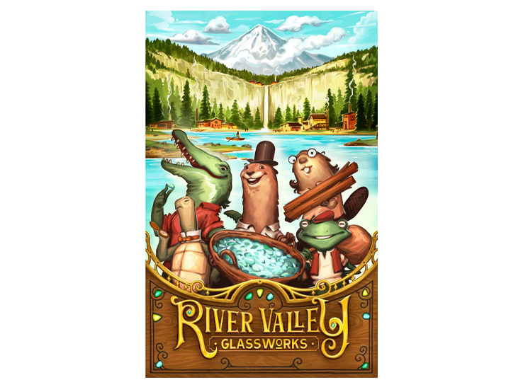 In River Valley Glassworks, you play as one of these pioneers, drafting glass from the market of river tiles. To do so, you have to play a piece from your inventory into the river. Each river tile can take only a specific shape, and you must play into a space adjacent to where you want to draft from. After you pick up your glass, the river shifts forward, revealing new pieces and new opportunities.